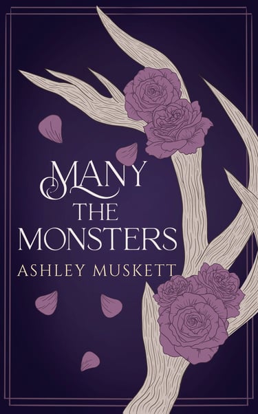 Designed an illustrated book cover for a romantasy novel inspired by Beauty and the Beast, featuring antlers and roses as key symbolic elements. The client shared a loose creative brief and referenced the aesthetic of The Raven Scholar by Antonia Hodgson, leaving significant room for interpretation and visual storytelling.